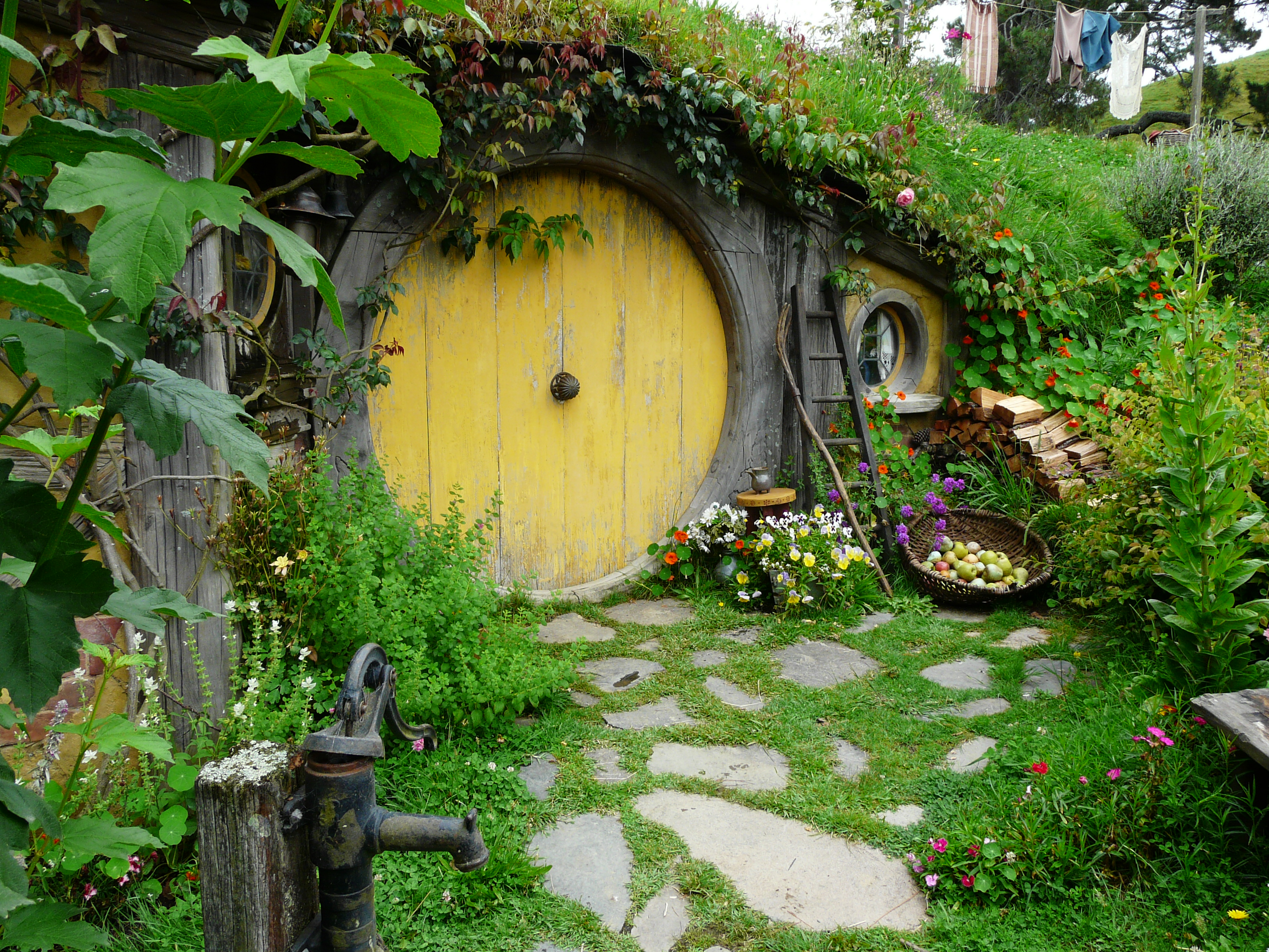 In the town centre a sign welcomes you to Hobbiton, and the adjacent tourist information centre is housed in a thatched hobbit house, while the windows and walls of local shops have been decorated with imagery from the films.