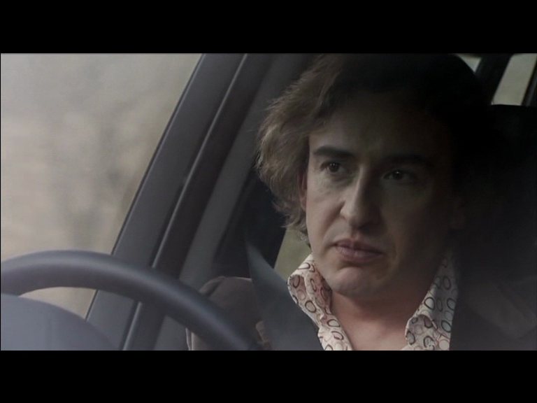 In one respect Coogan’s unhappiness is due to dissatisfaction with his lack of success in America. Anxious about being trapped in ‘the box’ (British slang for ‘television’), he explains to his agent at one point, when offered a role in the science fiction series Doctor Who, ‘I don’t want to do British TV’, adding, ‘I want to do films. Good films!’ The fact that the two of them repeatedly imitate the voices of much more famous actors underscores their comparative lack of success. We are given an intimate insight into the character’s egotism and anxiety through a dream sequence in which Coogan is addressed by Hollywood star, Ben Stiller[iv]. The actor tells Coogan that everyone wants to work with him, listing Tony and Ridley Scott, the Coen brothers, the Wachowskis, Todd Haynes. ‘They’re all geniuses,’ Stiller assures him, ‘and they wanna work with the genius’. ‘I can’t believe it’s happening’, gasps Coogan, to which Stiller replies ambiguously, ‘You’re living the dream, Steve. It’s all a dream’. However a later dream reframes Coogan’s anxieties about success and ‘performance’ more precisely in terms of masculinity. In the second dream he is dismayed to meet a man coming out of a village newsagent holding a tabloid newspaper bearing the headline, ‘COOGAN IS A CUNT SAYS DAD’. This is an equally vivid figure for Oedipal hostility and emphasises that what motivates Coogan, much more so than Brydon, is repression. He is the small man trapped inside a box, which is precisely why he cannot reproduce Brydon’s impression, why he cannot find a voice for this diminutive version of himself and why easy intimacy remains an impossibility for him. This is true of his relationship with Brydon and also with others, since Coogan is separated from his partner and children, and is ‘chasing women’, as Brydon puts it, while also trying to resurrect his relationship with the absent Misha.