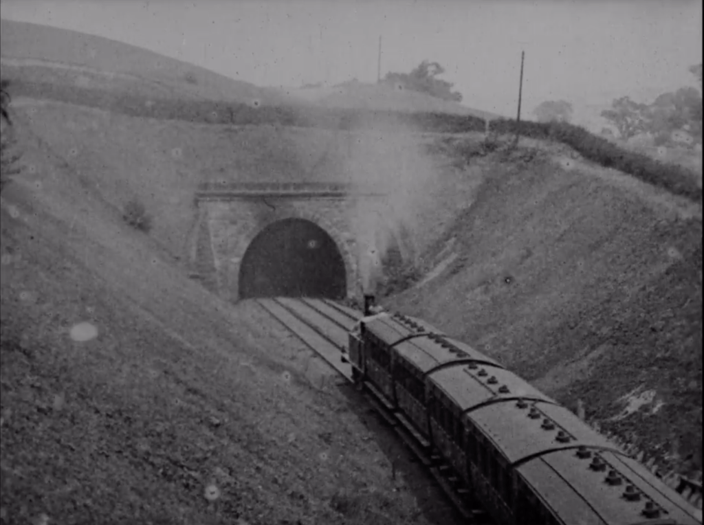The exercise worked so well that we decided to repeat it and, although all our teaching is now fully in-person, we have just held the fourth ‘micro-film festival’ with this year’s new students. Incidentally, if you google ‘micro-film festival’ you find promotional material for a number of short film festivals around the world, but as far as I’m aware, ours was the first and it remains the purest in formal terms. Once again, this year’s new group of students have produced a very affecting and witty body of work that is also a sophisticated reflection on the status of cinema and the history of the medium. The films are full of shots of screens and windows, as if making the cinema and the act of framing itself the subject of their films; they evoke the post-cinematic world discussed by Anne Friedberg, that is saturated with frames and screens of different sizes that express ‘a new logic to framed visuality’ (Friedberg, 2006: 243). As with early cinema, a central subject of their films is mobility and transport technologies (reminding us that cinema itself is a means of transport) and, while it may be accidental, one film of a steam train heading under a bridge might almost be a direct reference to the Lumière film, L’Arrivée d’un train en gare de La Ciotat (1896) or James Bamforth’s The Kiss in the Tunnel (1899) (see below).